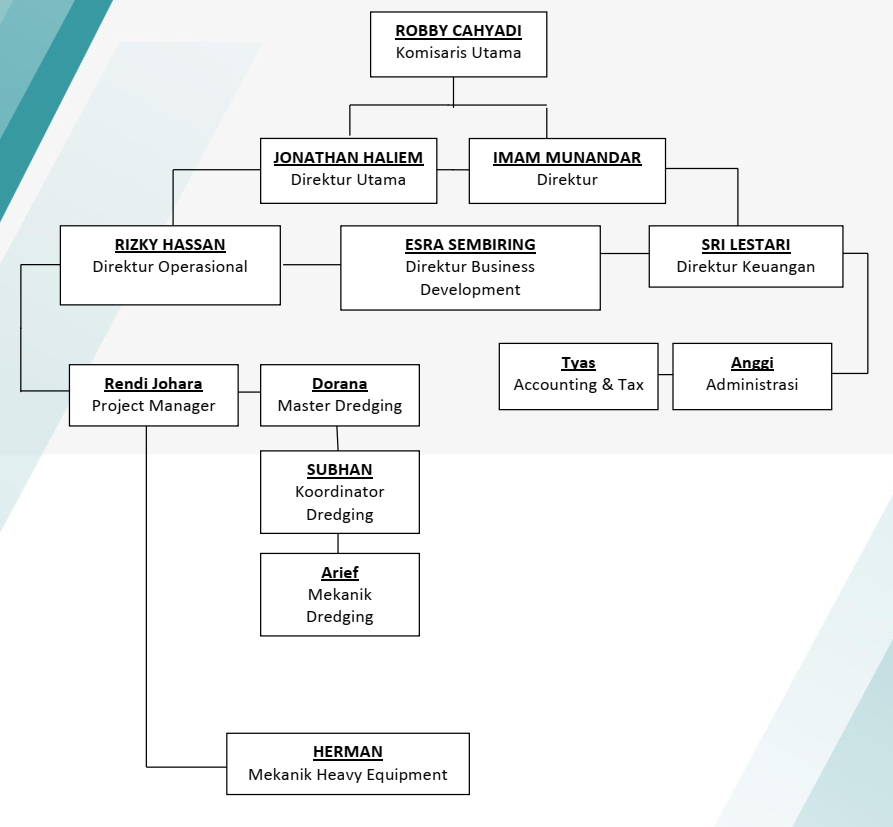 Perusahaan kami berdiri sejak awal tahun 2016 dengan nomor Akta Pendirian No. 70, bergerak khususnya dibidang Pengerukan (Dredging) services, Infrastructur Marine service, Rental Equipment, Supplier Spare Part Alat Berat berupa Amphibi Excavator, Crane, Dozer, dll, serta pembuatan Weight Bridge (Jembatan Timbang).